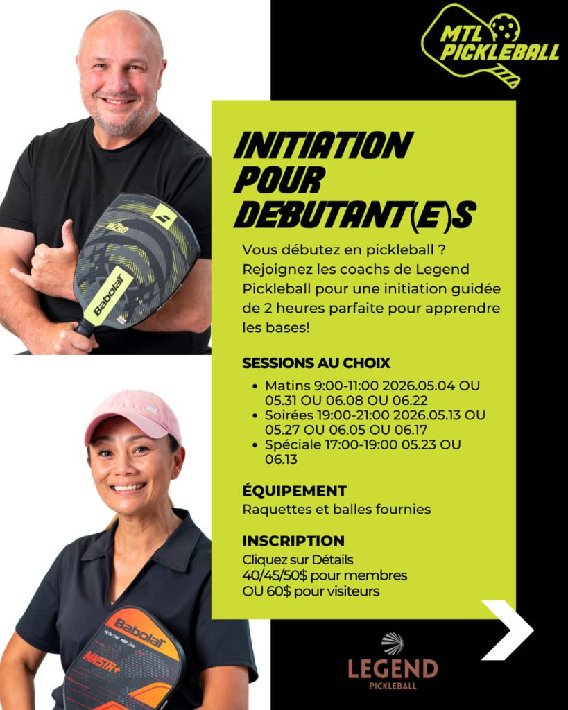 Initiation pour débutantsmtlpickleball25cr2026-04-06T18:18:38-04:00 Beginner Initation Spring Sessions Beginner Initiation Summer Sessions