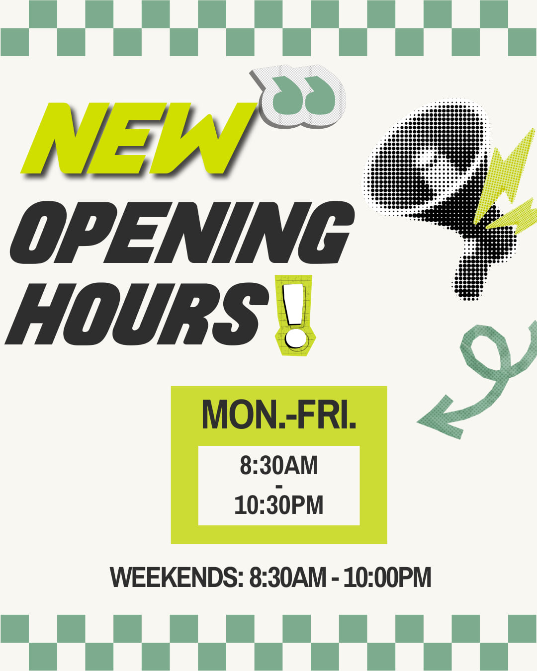 Nous prolongeons nos heures d’ouverture pour vous offrir encore plus d’occasions de jouer quand ça vous convient!
