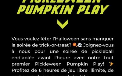 Joignez-vous à nous pour une soirée de pickleball endiablée avant l’heure avec notre tout premier Pickleween Pumpkin Play ! Profitez...